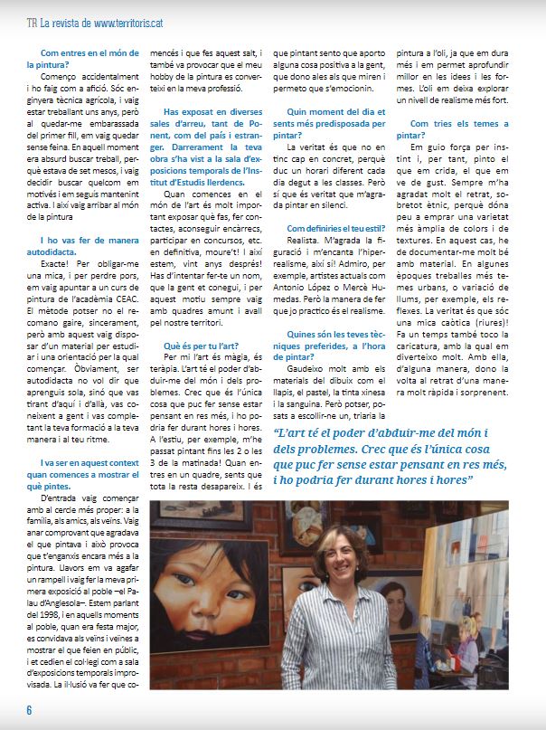 Aquí podeu llegir l'entrevista que fa poc em van fer a la revista digital territoris.cat. Espero que us agradi i us animi a gaudir de l'art!
